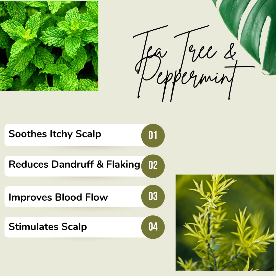 - Soothes scalp irritation – Tea Tree and Peppermint Oil calm dry, itchy scalps and combat dandruff