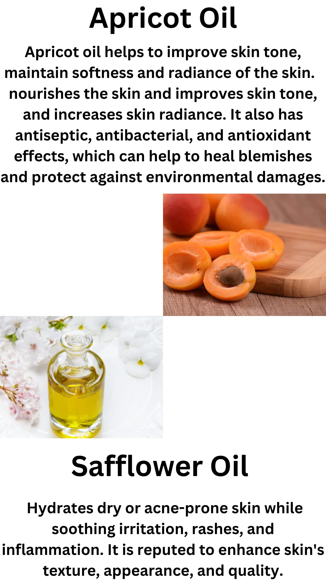 - Dưỡng chất sâu – Dầu mơ và dầu cây rum hữu cơ được làm giàu với dầu thầu dầu cung cấp độ ẩm lâu dài và phục hồi làn da khô, bong tróc.